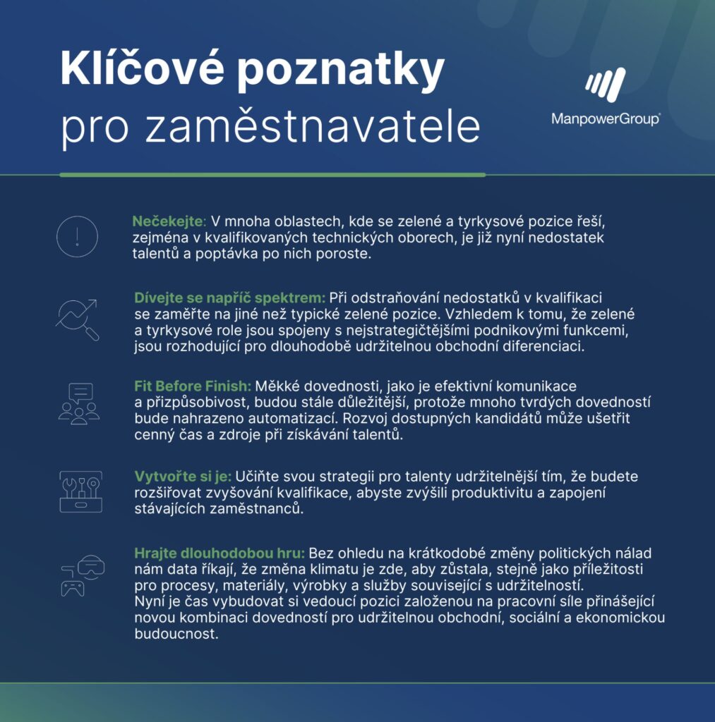 „Udržitelnost dnes není jen otázkou ochrany přírody, stává se klíčovou součástí firemní strategie. Znamená inovace, schopnost reagovat na změny a novou éru vedení lidí i rozvoje talentů. Firmy, které začnou s transformací včas, získají nejen konkurenční výhodu, ale i silnější pozici na trhu. V ManpowerGroup pomáháme našim klientům hledat a rozvíjet talenty, které si s těmito výzvami dokáží poradit,“ zakončuje Jaroslava Rezlerová, generální ředitelka ManpowerGroup.