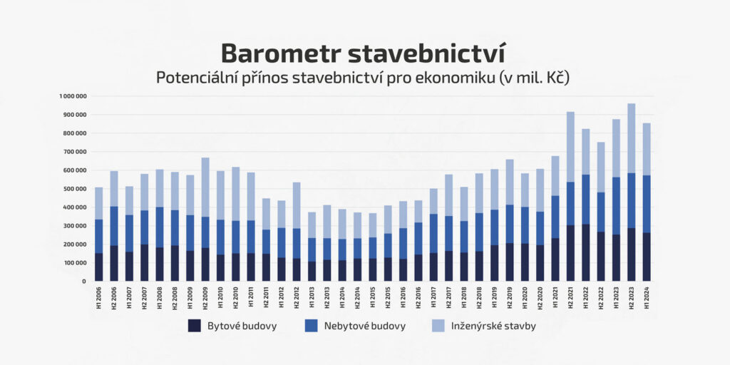 • Stavebnictví je nyní z velké části taženo inženýrskými stavbami, především rekordní výstavbou dopravních staveb.