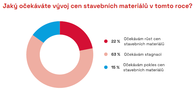Období nepředvídatelných cenových výkyvů je nejspíš u konce. Už loni se ceny stavebních materiálů stabilizovaly a letošní rok by se měl nést ve stejném duchu. Očekává se , že ceny materiálů budou stagnovat. Stabilizaci cen stavebních materiálů pro letošek očekává většina ředitelů firem (63 %). Usnadní jim to plánovaní a výběr materiálů pro nové projekty. S narůstajícím zájmem o ekologický a udržitelný přistup se dá očekávat stále častější prosazovaní alternativních materiálů na stavbách. Část dotázaných (22 %) stabilizaci cen nevěří a očekává zdražení materiálů, a to v průměru o 8 %. Vyplývá to z průzkumu analytické společnosti CEEC Research.