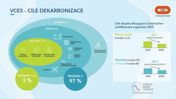 VCES, jako člen mezinárodní skupiny Bouygues Construction, se zavázala snížit do roku 2030 přímé emise skleníkových plynů o 40 % a nepřímé emise o 30 %. Fakt, že tyto cíle splňují podmínky Pařížské dohody, jasně potvrdila mezinárodně uznávaná iniciativa SBTi. Za účelem jejich dosažení VCES přizpůsobuje způsob práce jak na vlastních developerských projektech, tak na projektech pro své klienty.