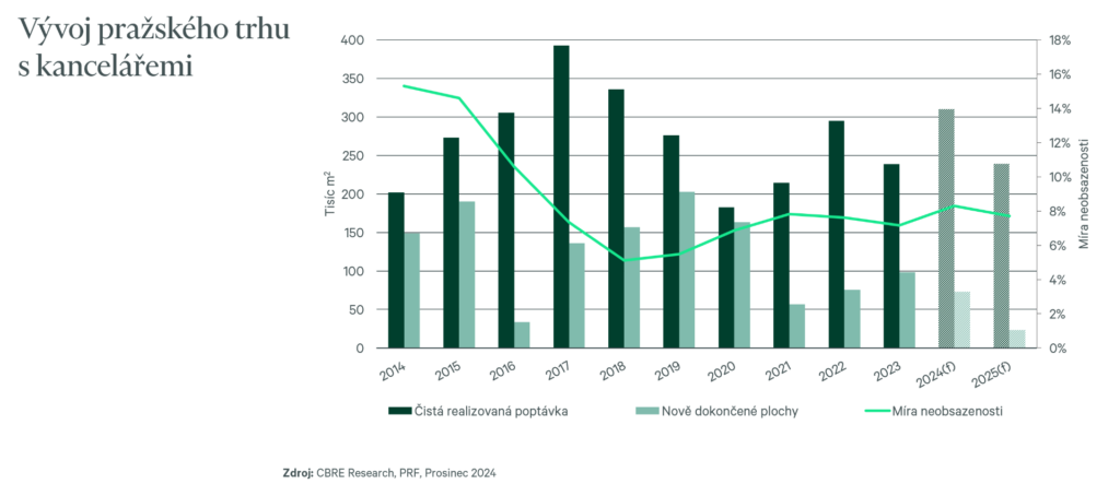Experti CBRE v příštím roce očekávají, že míra neobsazenosti by mohla mírně vzrůst, ale již ne tak rychle jako v roce 2024. V důsledku toho bychom mohli vidět pokračující tlak na snižování nájmů v některých nejvíce konkurenčních regionech.