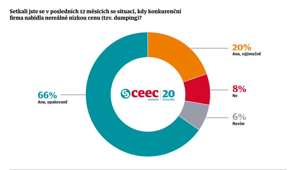 Dumpingové (nereálně nízké) nabídky představují významný problém na trhu veřejných zakázek. Až dvě třetiny firem se s tímto jevem pravidelně setkávají. Hlavním motivem pro podhodnocování cen je podle 86 % respondentů snaha získat zakázku za každou cenu – často bez ohledu na reálné náklady. Vyplývá to z průzkumu CEEC Research. „Model hodnocení podle nejnižší ceny, který v Česku nadále dominuje, považuje většina firem za škodlivý. Snižuje to kvalitu staveb a stavební firmy se dožadují změn. Firmy se shodují na nutnosti systémových změn. Nejlépe v tom, aby zadavatelé povinně vyžadovali ekonomické zdůvodnění podezřele nízkých nabídek a zavedení minimální hranice nákladů,“ prohlásil MICHAL VACEK, ředitel CEEC Research.