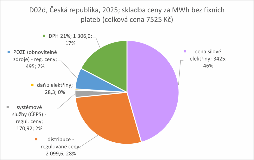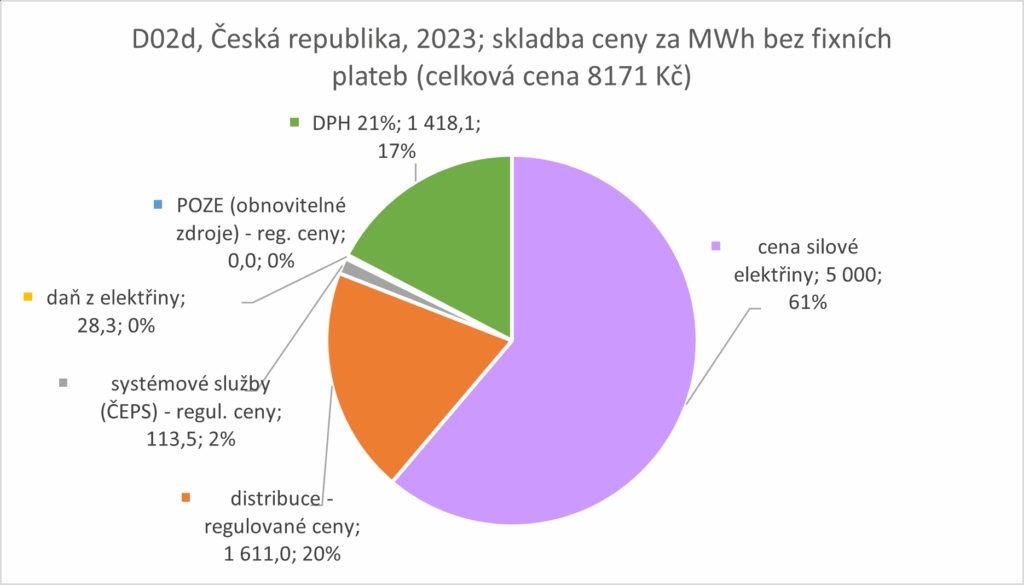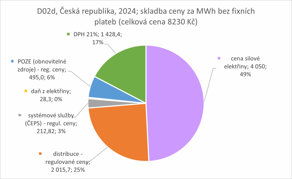 VÝVOJ PODÍLŮ JEDNOTLIVÝCH SLOŽEK CENY ELEKTŘINY U NEJBĚŽNĚJŠÍ DISTRIBUČNÍ SAZBY D02D