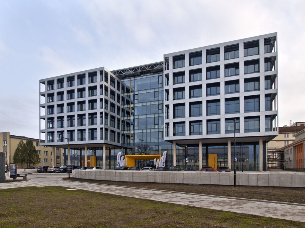 Nový pavilon urgentního příjmu a chirurgických oborů vyrostl uprostřed areálu Pardubické nemocnice na jižním okraji města. Osmipodlažní budova s centrálním atriem a heliportem na střeše poskytuje zázemí jak novým provozům, tak těm stávajícím, například chirurgickým, které se sem přesunuly z jiných budov v areálu. Koncept nového pavilonu vychází z návrhů jihlavské společnosti PENTA PROJEKT s.r.o. vedené architektem Jaromírem Homolkou, který je zároveň autorem stavby. Společnost PENTA PROJEKT se specializuje na zdravotnické stavby.