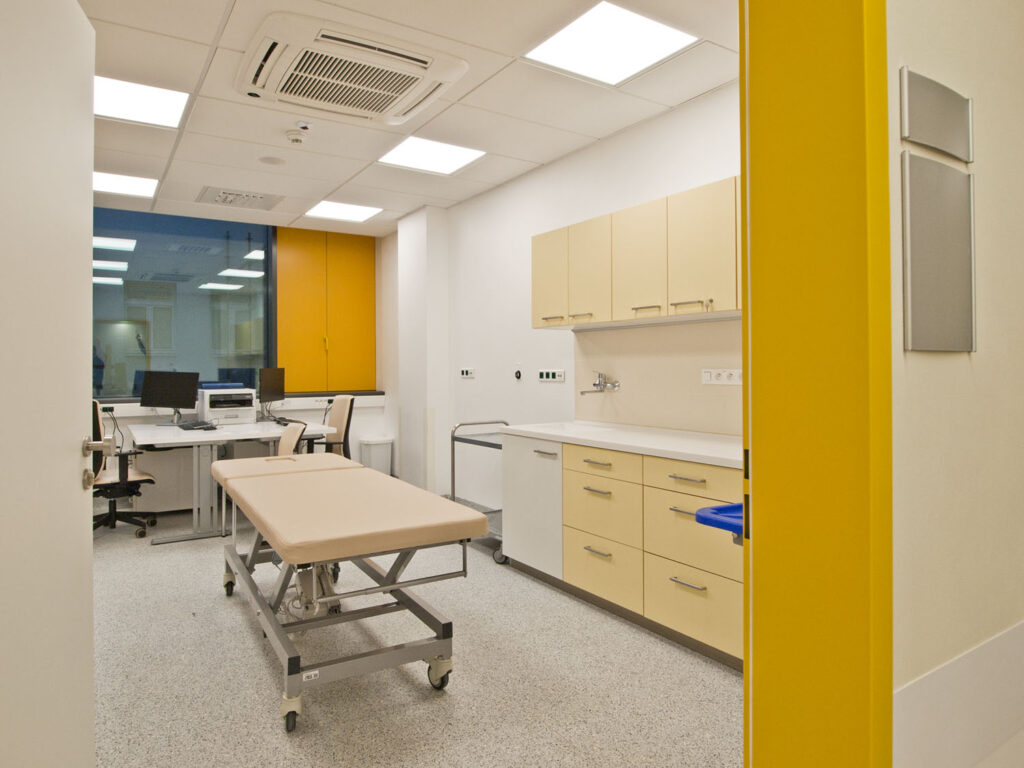 A jaké jsou první reakce pacientů a návštěvníků? Líbí se velké atrium se zelení a klidovými zónami, které po vstupu působí příjemně vzdušně. Pavilon se tak netváří prvoplánově jako nemocnice. I proto, že se zde nachází také bistro, nebo posezení. „Nezavděčíte se všem,“ říká architekt Franěk a pokračuje: „Sestřička pracující na modrém patře nemusí mít modrou ráda, raději by pracovala na žlutém. Ale zaměstnanec tam dnes je, zítra není. My se snažíme o nadčasové interiéry, protože musí fungovat dvacet, pětadvacet let beze změny. I díky tomu převažují kladné reakce a věřím, že i investor je spokojený a zůstane tomu tak i v budoucnu.“