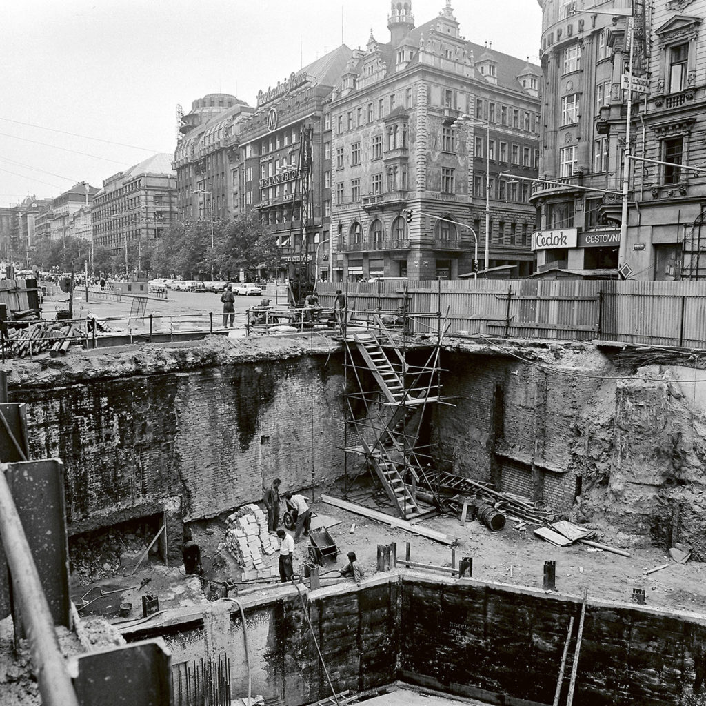 Stavba vestibulu Můstek A uprostřed Václavského náměstí