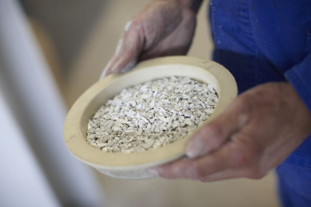 Fakta – Recyklát může být po výrobě šedý nebo hnědý. Pokud je původní PVC ze starších oken nebo dveří tříděno podle barev, je výsledkem nemíchaný recyklát, který lze přímo vrátit do výroby nových profilů. Při výrobě okenních či dveřních profilů je recyklát extrudován do vnitřních stěn profilů a v procesu koextruze je obalen novým materiálem – prvoplastem. Zákazník jej tedy neuvidí a nemusí se změny barev obávat.