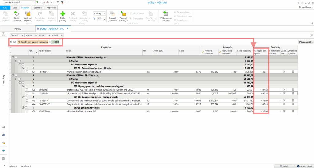 Používání eCity přináší veřejným zadavatelům nejen úsporu času a snížení administrativní zátěže, ale především vyšší míru transparentnosti. Každé rozhodnutí nebo změna je dokumentována, auditovatelná a snadno dohledatelná. Kontrola nabídek je jedním z nejdůležitějších kroků každého výběrového řízení. Systém eCity nabízí zadavatelům řadu funkcí, které mohou tento proces výrazně zpřehlednit a zefektivnit. Systém automaticky zachytí cenové odchylky a uživatel tak snadno odhalí neobvykle nízké nebo vysoké jednotkové ceny, což usnadňuje identifikaci potenciálně rizikových nabídek. Uživatelé mohou také velmi snadno a přehledně porovnat jednotlivé položky a celkové náklady. Díky těmto funkcím mohou veřejní zadavatelé lépe zvládat administrativní náročnost výběrových řízení, zvýšit transparentnost procesu a zajistit jeho hladký průběh v souladu s legislativními požadavky.