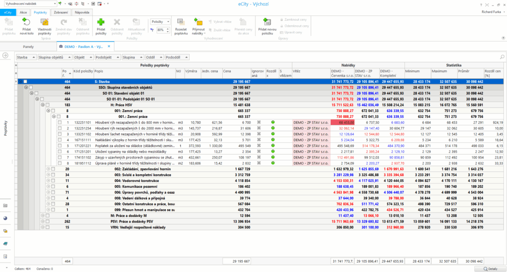 Systém eCity je proto navržen tak, aby veřejným zadavatelům poskytl nástroje pro efektivní správu výběrových řízení od A do Z. Začíná to už samotnou přípravou zadání, systém umožňuje snadné vytvoření podkladu pro výběrové řízení z položkového rozpočtu. Následné srovnání nabídek pak probíhá automaticky. Systém sám porovná jednotkové ceny a pomáhá uživateli detekovat neobvykle nízké či vysoké nabídky. eCity nabízí také pokročilou kontrolu výměr v odevzdaných nabídkách. Při načtení nabídky systém automaticky porovná výměry a upozorní na případné nesrovnalosti. Pokud došlo ke změně výměry, která není povolena, může zadavatel uchazeče jedním kliknutím vyřadit z výběrového řízení. Tím se výrazně zvyšuje jistota při posuzování nabídek a snižuje se riziko neoprávněných úprav, které by jinak vyžadovaly zdlouhavou ruční kontrolu.