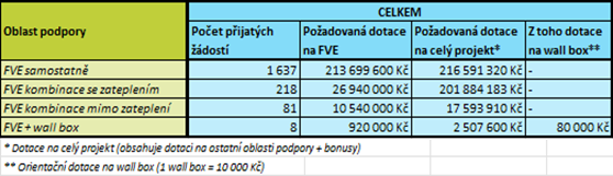 Přitom dotace na samotné zateplení pozornost přitáhly poměrně velkou. Za prvních 40 dní podali zájemci takřka 3 tisíce žádostí o dotace čistě na zateplení. Zásadně se propadl počet žádostí o dotace na wall boxy. Za zmiňovaných 40 dní obdržel Státní fond životního prostředí pouze 8 žádostí o dotaci na wall box sloužící k nabíjení vozu s elektrickým pohonem. “Obecně lze říci, že dotace jako celek fungují dobře. Na počátku bylo možná více vysvětlování potenciálním zájemcům, protože změn bylo opravdu hodně a je možné, že to ještě nějaký čas potrvá. Vyplácení financí dopředu ale fungují dobře, většinou mají lidé peníze na účtu do měsíce od schválení dotace. To je za nás přijatelná lhůta a určitě silný motivační prvek,” popisuje první zkušenosti s novými dotačními podmínkami Pavel Matějovič. Nominálně za prvních 40 dní vedou žádosti o zateplení v celkové výši 1,1 miliard korun. Na fotovoltaiku přišly žádosti v celkové hodnotě 252 milionů korun a na tepelná čerpadla 95,5 milionů korun.