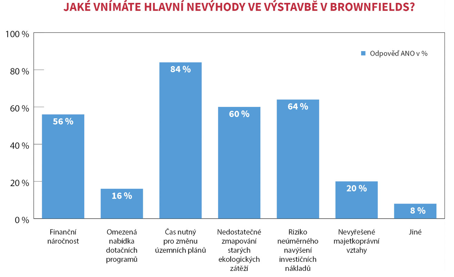 Brownfieldy jsou lokality s velkým potenciálem, ale výstavba na nich s sebou nese různé obtíže. Pro developery je mimo jiné také finančně nákladnější oproti výstavbě „na zelené louce“. Podle dotázaných developerů stát obnovu brownfieldů dostatečně nepodporuje. V průměru na těchto plochách stojí 29 % všech developerských projektů. Vyplývá to ze Studie developerských společností zpracované analytickou společností CEEC Research.