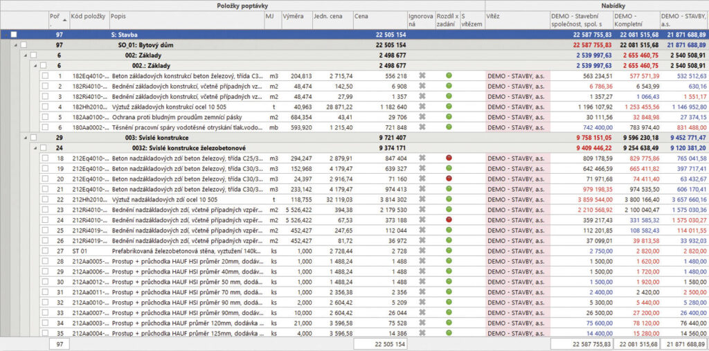 „Další nespornou výhodou systému euroCALC je rychlé a přesné porovnání nabídek. Jakmile subdodavatelé odešlou své naceněné položky, systém je přehledně zobrazí vedle sebe v tzv. cenovém zrcadle. Přípravář tak na první pohled porovná ceny jednotlivých subdodavatelů a filtruje podezřele vysoké nebo nízké položky,“ dodává Michal Špoljarič.