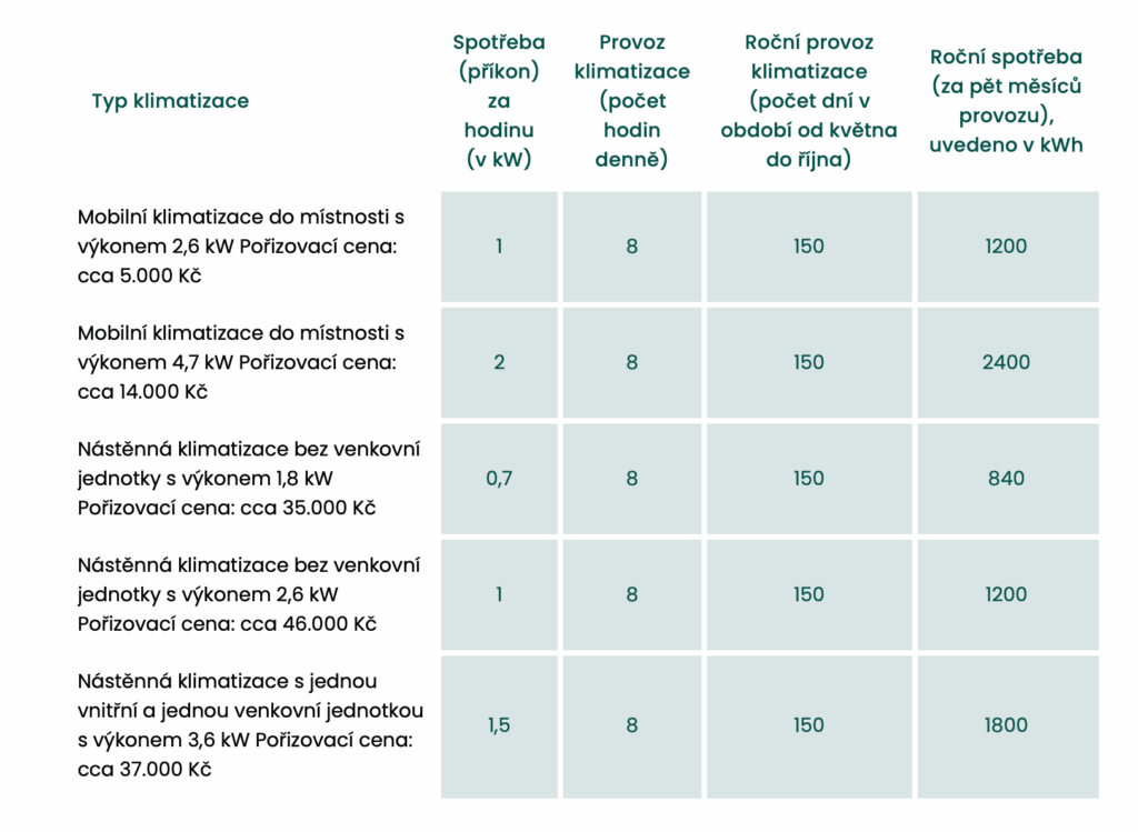 Očekávanou spotřebu potom spočítáme podle uvedeného příkonu a reálné doby provozu klimatizace. Vzorec pro výpočet roční spotřeby vypadá následovně: příkon × počet hodin provozu klimatizace v jednom dni × počet dnů, během kterých klimatizace běží.