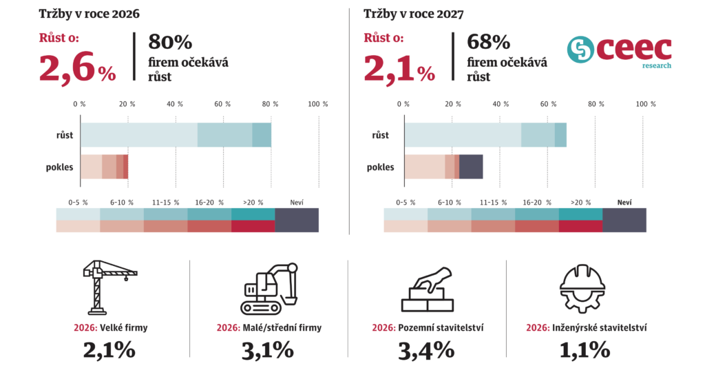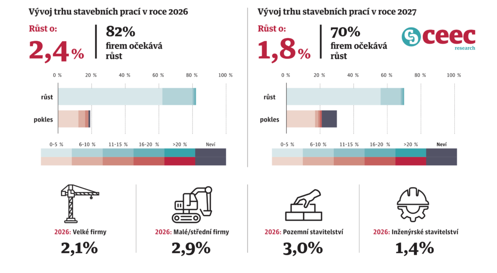 – Růst trhu stavebních prací: 2026 +2,4 %, 2027 +1,8 %.