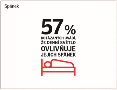 „Češi se v uvedeném průzkumu pohybují mírně nad průměrem. Celkem 57 % dotázaných si myslí, že denní světlo ovlivňuje jejich spánek a 68 % věří, že má vliv i na jejich produktivitu. Nejvíce ovlivňuje denní světlo Italy a překvapivě také Slováky. Naopak nejméně jsou ovlivňováni denním světlem Britové,“ dodává k průzkumu Klára Bukolská, hlavní architektka společnosti VELUX.