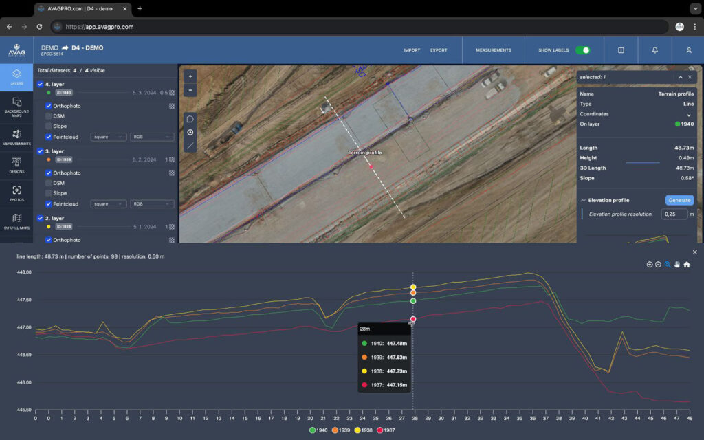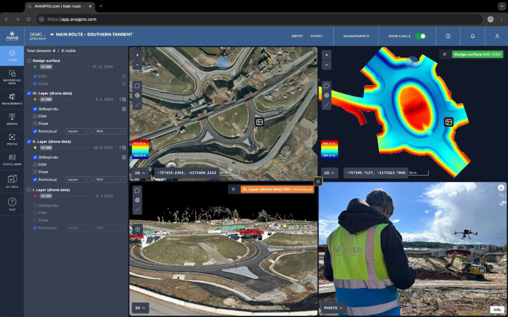 Dron vám tak zajistí dokonalou dokumentaci, kterou můžete porovnat s původními či existujícími plány. Toho využívají nejen aktuální stavebníci, ale také katastrální úřady při kontrole existujících map. Od měření je už jen malý krok k výpočtům. Při využívání dronů lze získat přesný výpočet objemů přesunuté zeminy a kontrolovat tak práci stavebních strojů.