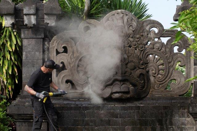 Památka Bajra Sandhi na indonéském ostrově Bali přitahuje návštěvníky z celého světa. Nyní prošla pečlivým odborným čištěním horkou párou, aby nebyla poškozena. Společnost Kärcher památku zdarma vyčistila v rámci kulturního sponzoringu.