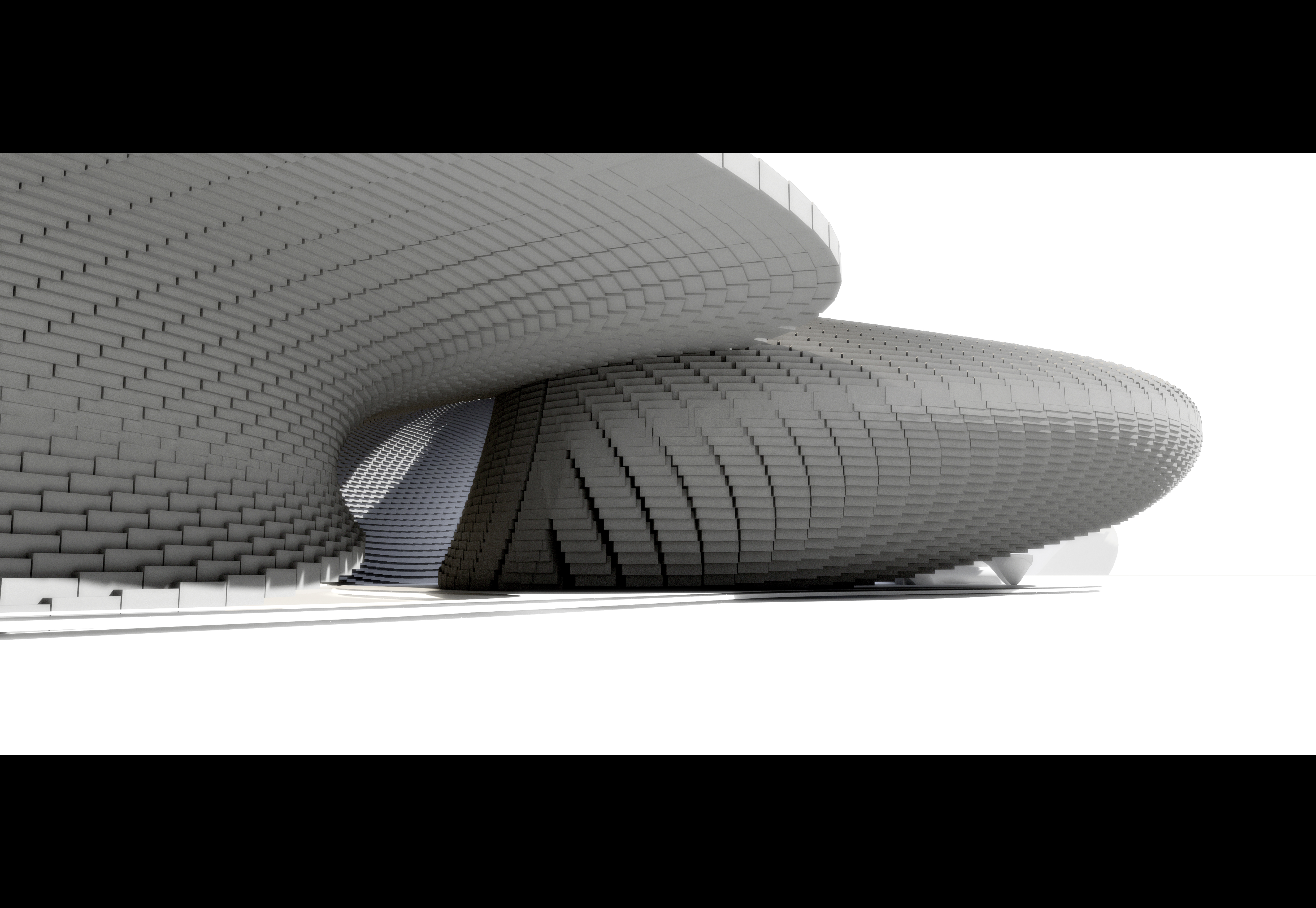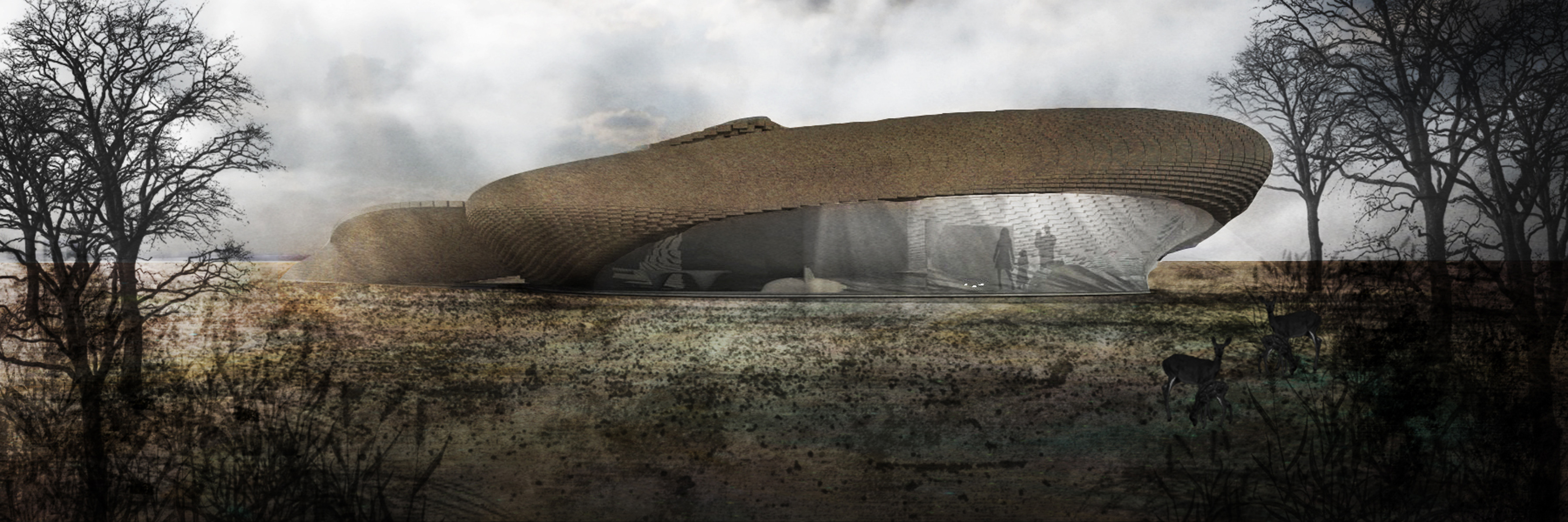 Tvar objektu byl hledán s okamžitou kontrolou tlačených a tažených vláken, tak aby bylo dosaženo maximálního tlaku a minimálních tahů. V místech vrcholků kopulí, kde je tlak nepříznivý pro klenbu, jsou vytvořeny okulusy, provětrávací a prosvětlující otvory. Protoarchitektura je tvořena z cihly bez dodatečného zateplení. Homogenní struktura zajišťuje ochranu vnitřního prostředí s koherentním materiálovým řešením. Jednoduchost systému vychází z materiálové ekologie a konceptu. Cihly v přečnělcích jsou kryty pálenými taškami.