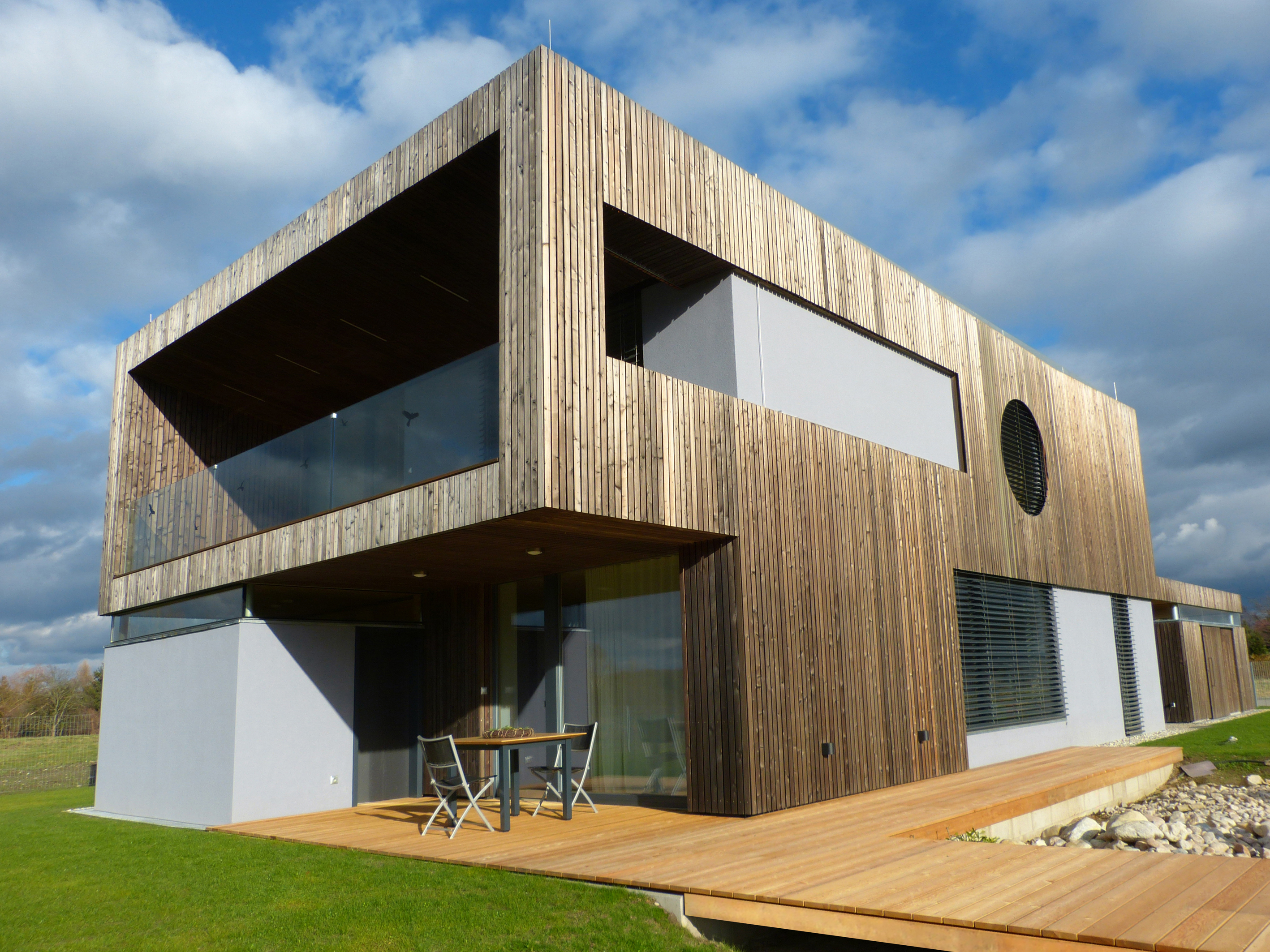 RD Jistebsko ATREA s.r.o. DOMY ATREA. Vítěz veřejnosti soutěže Pasivní dům 2017, dřevostavba abstraktního vzhledu s minimalistickým designem, ale v blízkém, téměř kontaktním souladu s přírodou.
