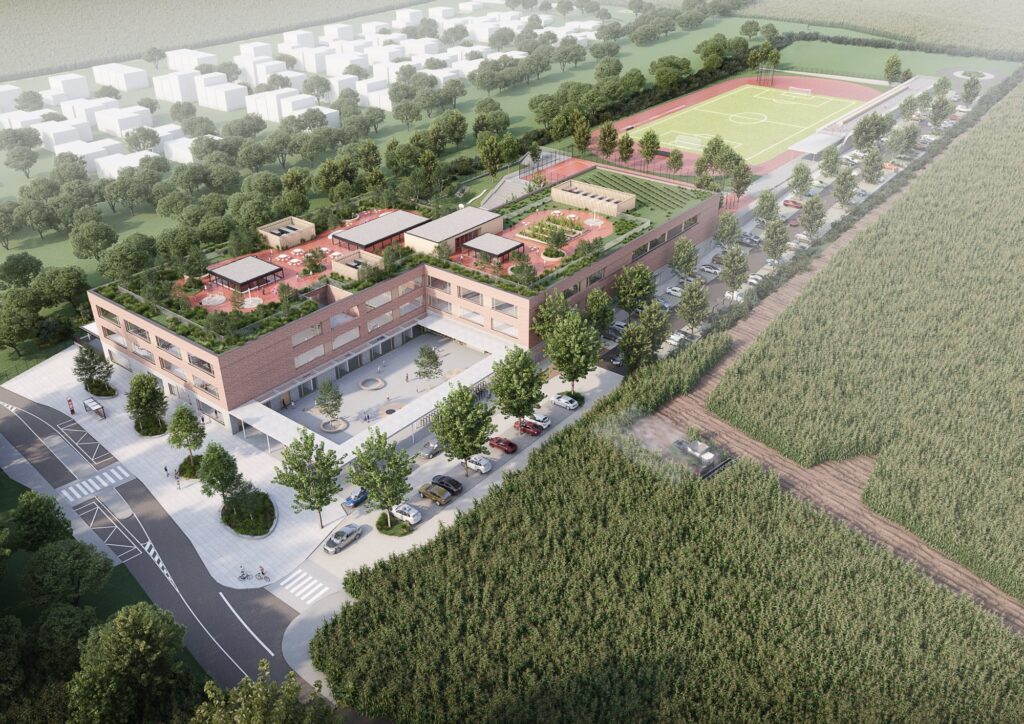 Projekt VIDA vynikne zelenými technologiemi a neobvykle rozsáhlým sportovištěm. Školní budovu bude ve studených obdobích vytápět a v horkých chladit kaskáda osmi tepelných čerpadel se zemním kolektorem zabudovaným pod fotbalovým hřištěm. Z dalších prvků udržitelného rozvoje lze uvést střešní fotovoltaiku, podlahové vytápění, masivní zateplení fasády s tloušťkou izolace až 36 cm, exteriérové žaluzie a také soustavu robustních akumulačních nádrží, z nichž bude možné využít dešťovou vodu v sociálním zázemí budovy. Sportovní areál bude zahrnovat fotbalové hřiště s atletickou dráhou, tenisovými kurty a multifunkčním hřištěm. Ojedinělý je krytý atletický tunel, který patří k hlavní budově.
