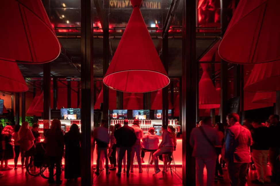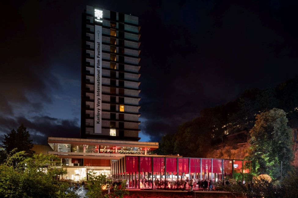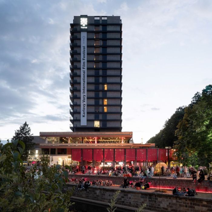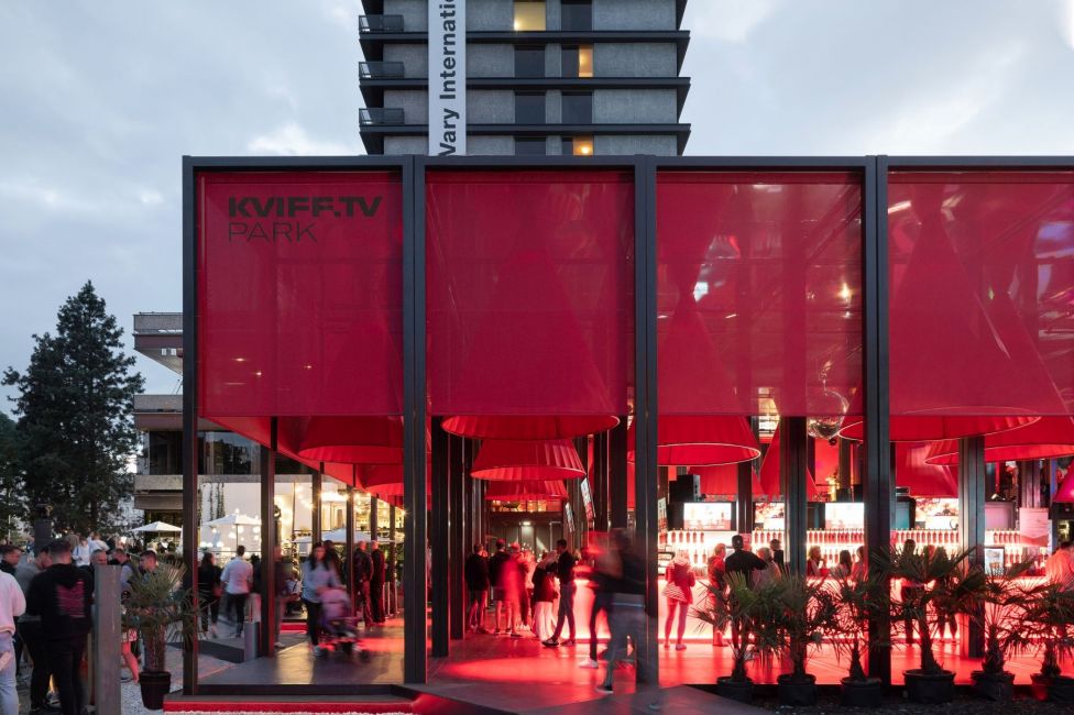 KVIFF.TV Park vyrostl vedle hotelu Thermal, a proto respektuje jeho ryzí charakter. Celý projekt dočasné stavby zapadl do konceptu filmového festivalu.