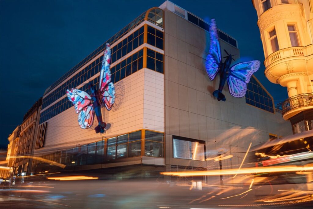Výraznou novinkou jsou plastiky motýlů od Davida Černého, které jste umístili na fasádu Máje Národní. Odkud vzešla tato myšlenka?