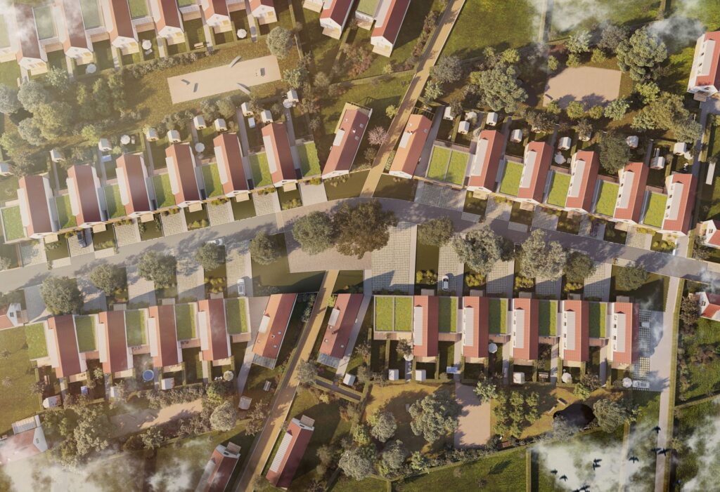 Rozmanitost se propisuje také do návrhu rozmístění jednotlivých domů. Důvtipné architektonické zpracování dokáže budoucím uživatelům na malé ploše zajistit jak prostor pro setkávání a navazování sousedských vztahů, tak  vytvořit zákoutí, která nabízí vysokou míru soukromí. „Cílem bylo stanovit plochy veřejné, poloveřejné a soukromé a udržet správné velikosti a viditelnost prostoru a zón. Zní to možná složitě, ale podobné principy fungovaly v každé vesnici už od pradávna a postavená jsou na nich i všechna shromažďovací místa na menších městech. Škoda je, že jsme na tuhle ‚kvalitu‘ a její dopad na obyvatele začali v novodobém urbanismu zapomínat. Je mnoho států v Evropě, které s tím mají skvělé zkušenosti. Věříme, že se podaří tento typ výstavby ukotvit i u nás a bude to čím dál častější model výstavby,“ říká Jakub Mareš, architekt Ateliéru k světu, který stál u zrodu urbanistické koncepce území.