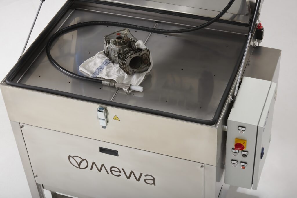 Společnost Mewa nabízí tuto technologii v podobě mycích stolů se štětcem ve dvou velikostech a také v provedení vysokotlakých čističů dílů. Ty jsou užitečné zejména v případech, kdy je třeba vyčistit mnoho silně znečištěných dílů nebo dílů s velmi šikmou geometrií. Zde je účinek čisticí kapaliny zesílen tlakem až 80 barů a teplota čištění se pohybuje kolem 40 stupňů.