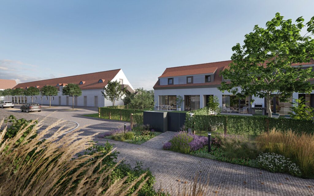 Namísto neosobních bloků zde vznikají rozmanité typologie domů – od řadových až po menší bytové domy. Po obvodu areálu budou domy v tradičním vesnickém stylu se sedlovými střechami a přírodními materiály, které navazují na původní stavby. Střed zástavby naopak tvoří moderní budovy s plochými střechami, které dodávají celku kontrast a dynamiku. Projekt už je ve výstavbě a po zahájení prací má prodáno 30 % kapacity. Dokončení se plánuje na podzim 2027.