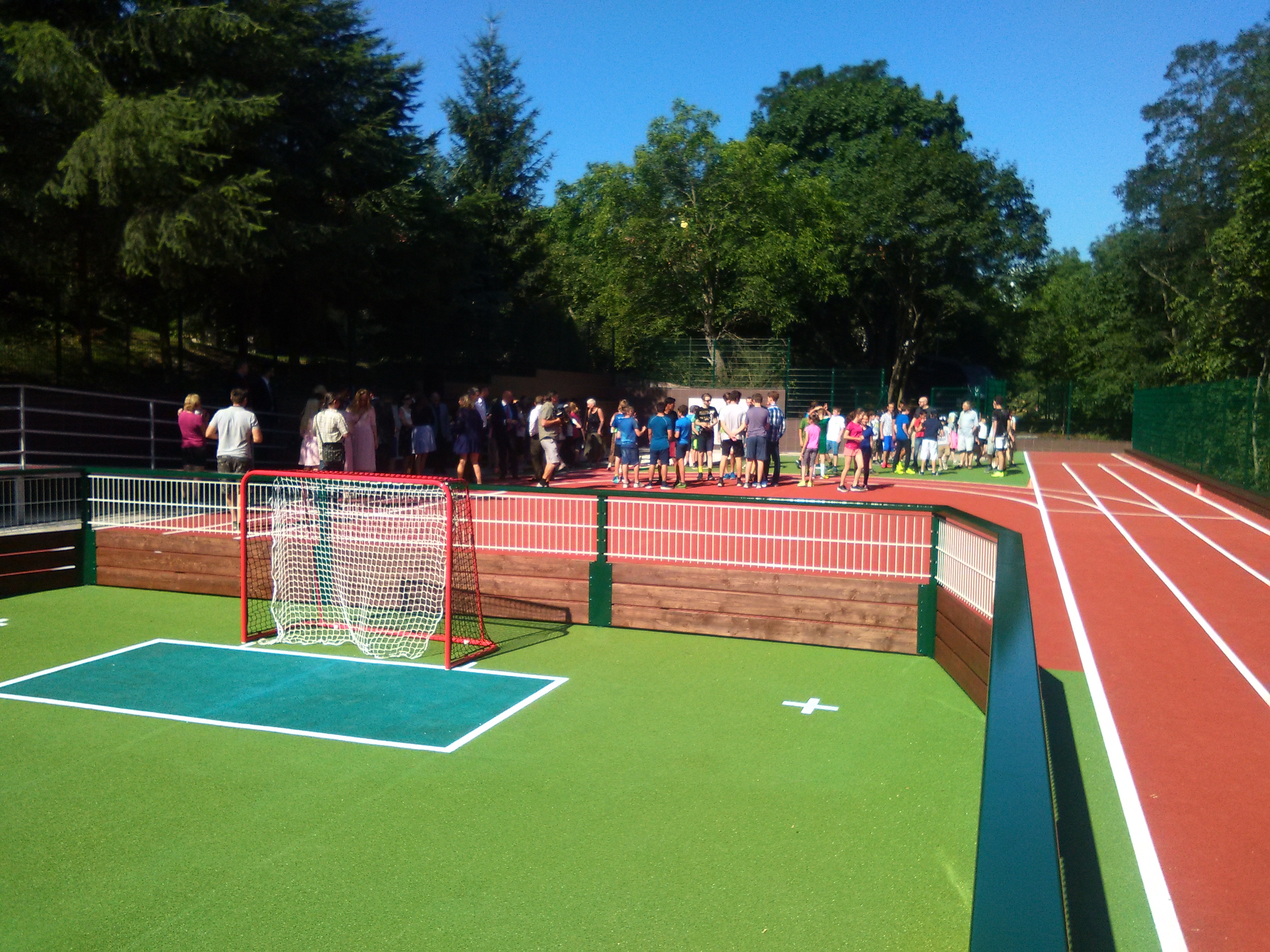 Slavnostním otevřením atletického stadionu v BB Centru provázel světový rekordman, bývalý vícebojař a olympijský vítěz v desetiboji Roman Šebrle. První, kdo stadion podrobil zatěžkávací zkoušce, byli žáci druhého stupně z nedaleké základní školy, kteří se mezi sebou utkali ve sportovním trojboji. Podpořit a fandit jim přišli jejich mladší spolužáci.
