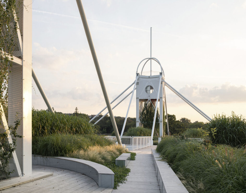 „Jedním z klíčových prvků revitalizace byla úprava střechy, která získala nový charakter. Náš projekt vycházel z původního architektonického řešení, neměnili jsme půdorysné ani výškové rozměry stavby. Zanedbané betonové plochy jsme proměnili na zelené střechy přístupné veřejnosti s celoročním využitím. Kromě oddychu a relaxace v zeleni jsme tu chtěli umožnit sportovní a společenské aktivity. Na střeše se nyní nachází bufet, běžecká dráha a herní prvky,“ říká architekt Šulek a dodává: „Nášlapnou vrstvu střech původně tvořila tmavá betonová dlažba, která v létě absorbovala obrovské množství tepla – teplotu v okolí zvyšovala až o 3 °C, ve večerních hodinách to mohlo být až 10 °C. Betonovou plochu jsme proto zredukovali o 5000 m2 a doplnili o intenzivní vegetaci. Výsadba 1850 m² zvyšuje vlhkost a ovlivňuje kvalitu vzduchu.“