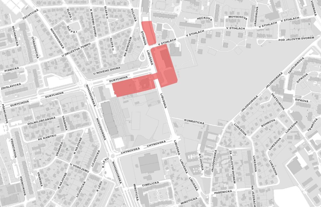 Se nachází na rozhraní Prahy 4 a Prahy 12. V květnu 2024 byla Radou a Zastupitelstvem hl. m. Prahy schválena změna územního plánu, která umožňuje významně navýšit stavební kapacity tamějších městských pozemků okolo budoucí stanice metra Nové Dvory. Díky tomu bude možné transformační území o rozloze 30 hektarů využít k výstavbě až 2000 městských bytů a polyfunkčního domu nad stanicí metra, který nabídne prostory pro bydlení, administrativu, maloobchod a komunitní účely. V nové městské čtvrti najde svůj nový domov až 5 tisíc lidí a vznikne tu až 5 tisíc nových pracovních míst.