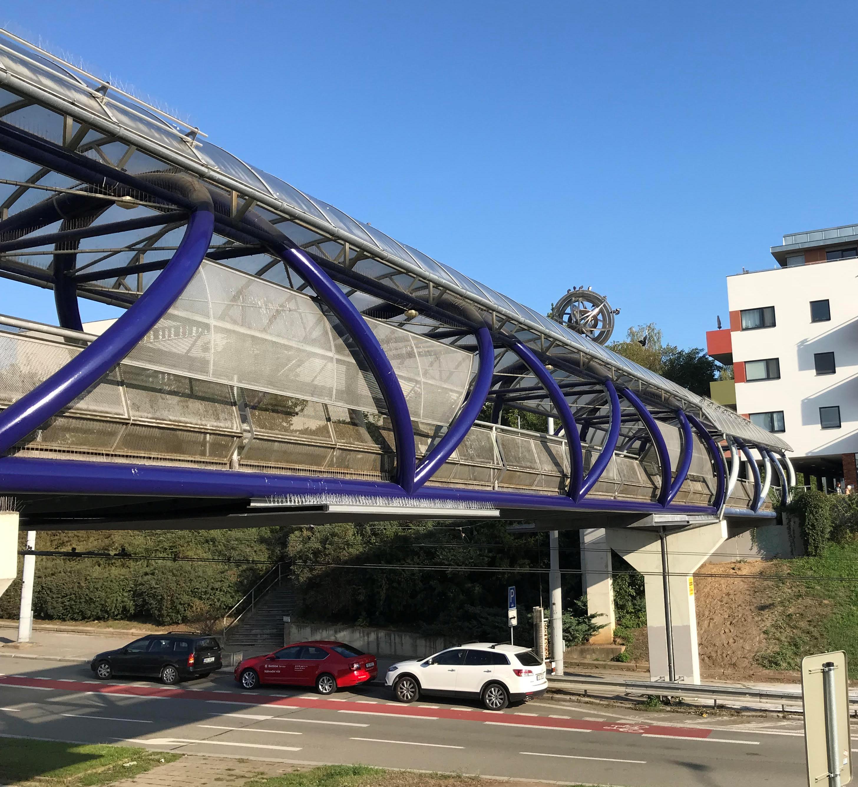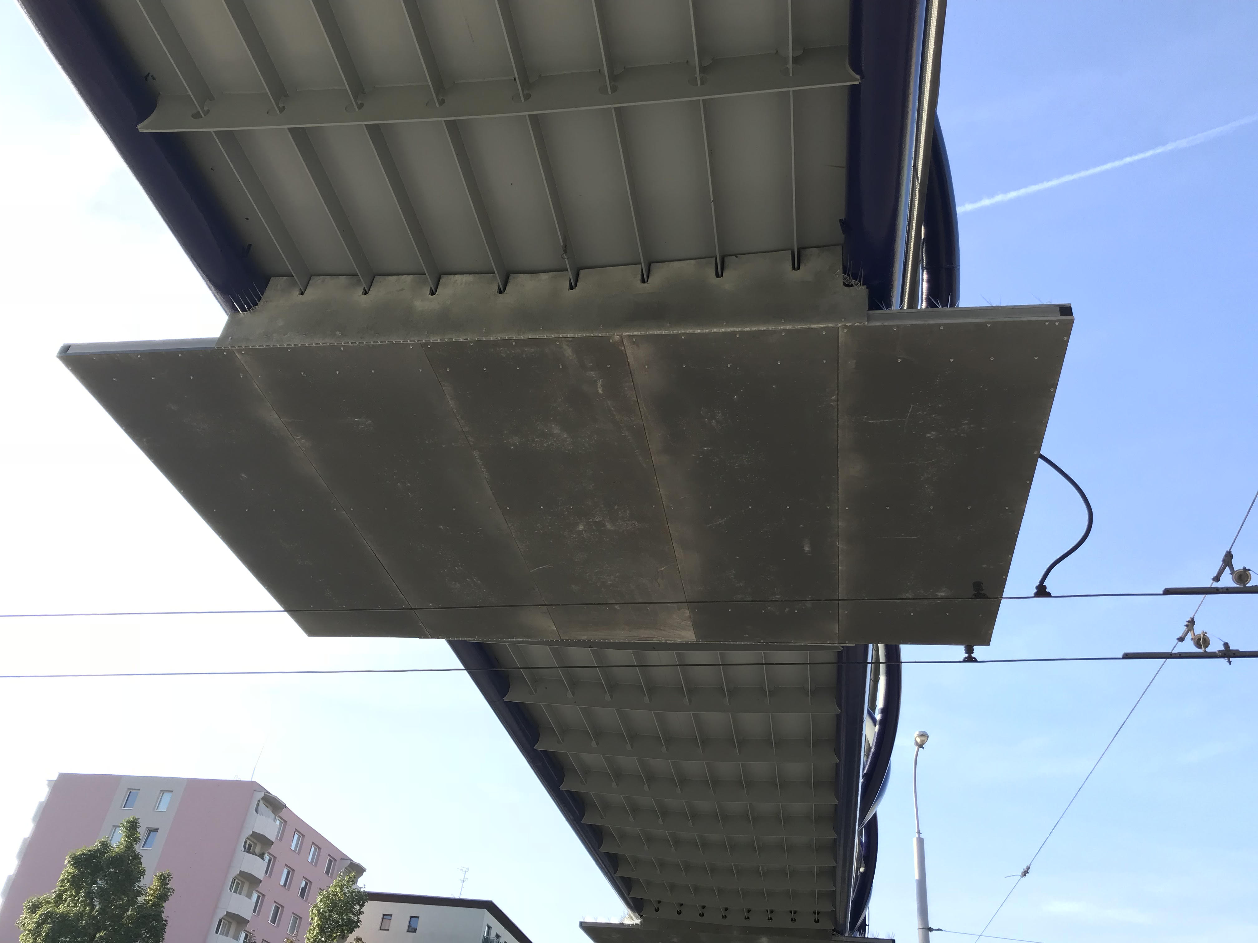 Do takovéto rekonstrukce se pustil Dopravní podnik města Brna, který při výměně trolejového vedení zaměnil i původní pozinkované plechy protidotykových izolačních zábran na pěší lávce v ulici Petra Křivky, které navíc doplnil o hroty proti sedání ptactva. Vedení podniku se k záměně materiálu rozhodlo, protože kompozitní materiál má nízkou hmotnost, vysokou pevnost, nerezaví, je nevodivý, téměř bezúdržbový a ekonomický.
