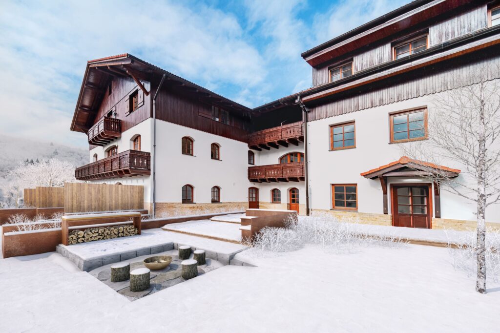 O architektonické řešení se postaral ateliér Andrle architekti, jenž při rekonstrukci klade důraz na zachování původního horského charakteru budovy při současném zajištění moderního komfortu. Příjemným místem k setkávání se stane slunečná terasa s lehátky a grilem. Milovníci sportu ocení prostornou kolárnu a lyžárnu s dostatkem místa pro veškeré vybavení. Ničím nerušený odpočinek pak zajistí relaxační zóna s vyvýšenými záhony.