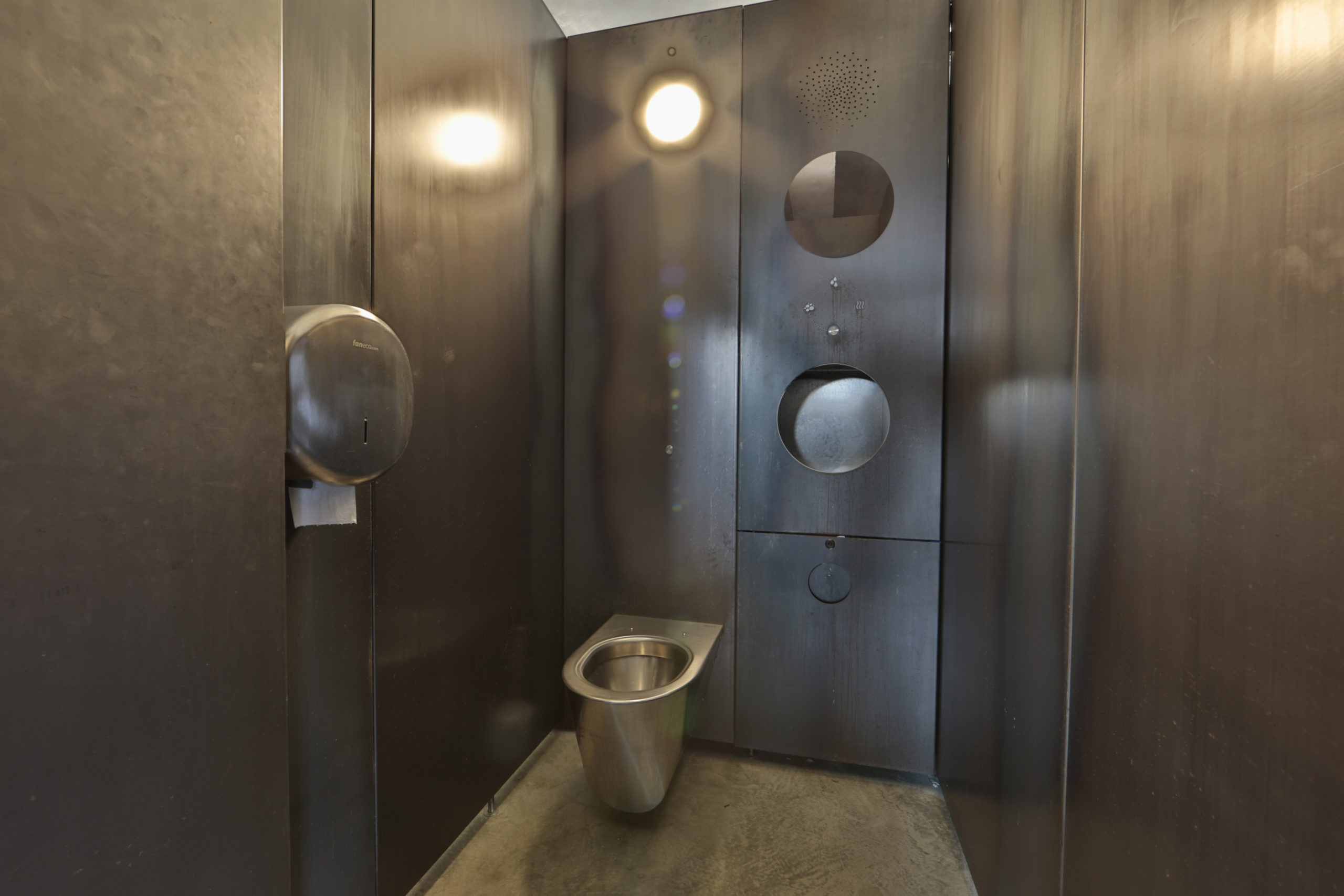 Dále nerezové pisoáry se skrytým splachováním SLPN 09C; nerezové závěsné WC SLWN 04, premiéru má také atypické provedení piezo splachovačů WC SLW 01PA bez předního krytu na tlakovou vodu a nerezové doplňky. Značka Sanela vybavila i toalety pro invalidy, kde byl instalován nerezový záchod SLWN11, splachovač bez předního krytu SLW 03PA, madla a doplňky.