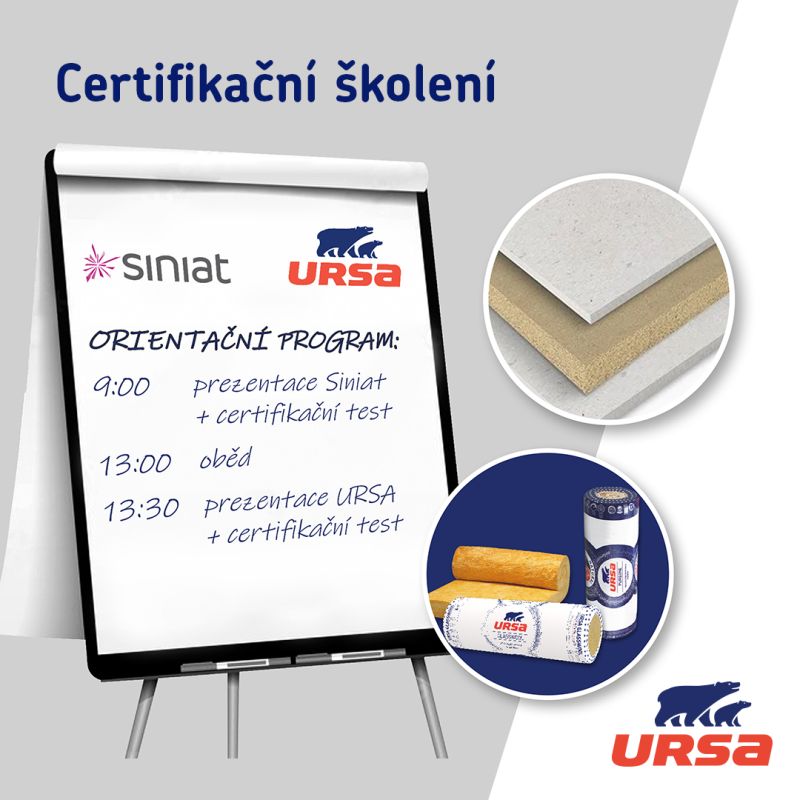 Společnosti URSA a Siniat pořádají pro své partnery i odbornou veřejnost prezentace a školení, které se budou konat ve dnech 1., 3. a 17. března 2023 v Říčanech u Brna, v Ostravě – Porubě a v Rožnově pod Radhoštěm. Hlavním cílem školení je přispět k tomu, aby byl materiál ve stavební konstrukci správně zabudován a plnil tak spolehlivě svou funkci.