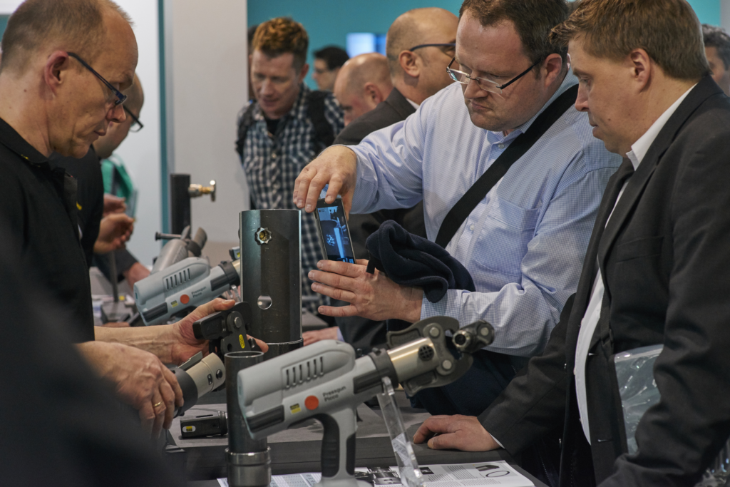 Stále v obložení: kolem pracovního stolu na stánku Viega bývá neustále plno. I letos si zde návštěvníci stánku mohou prohlédnout a rovnou i vyzkoušet nové produkty pro potrubní rozvody (Foto: Viega)