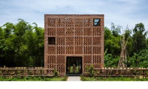 Keramická dílna na břehu řeky slouží částečně i k rodinnému bydlení. Perforované stěny z pálených cihel jsou nejen zajímavě dekorativní – přivádějí dovnitř rozptýlené světlo, ve vlhkém prostředí u řeky umožňují provětrávání a vytvářejí optimální klima pro práci i pro samotné keramické výrobky.