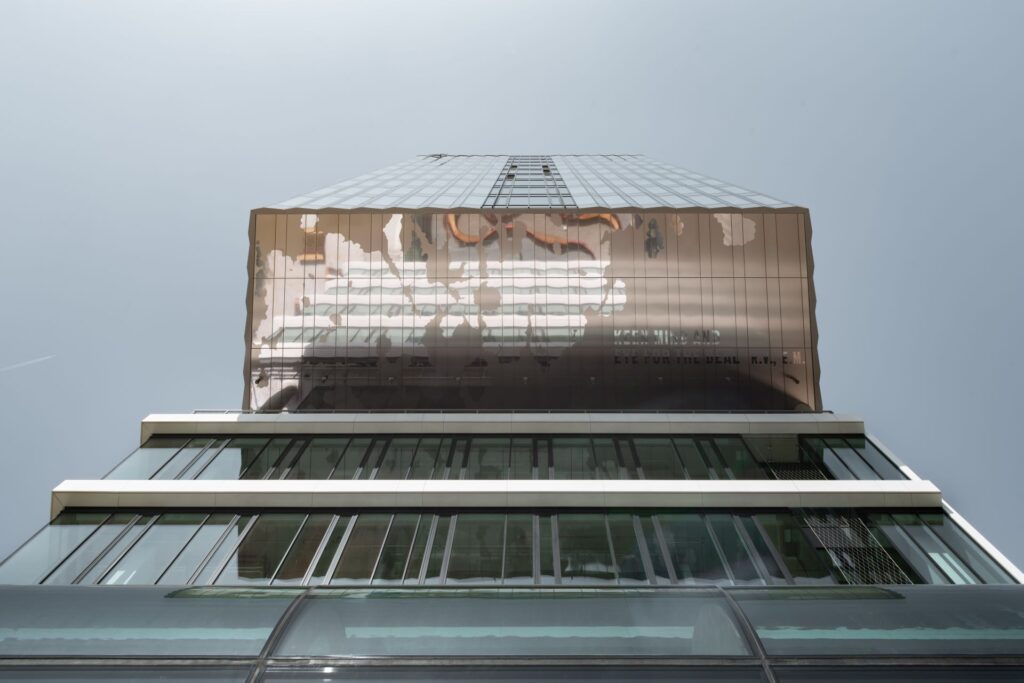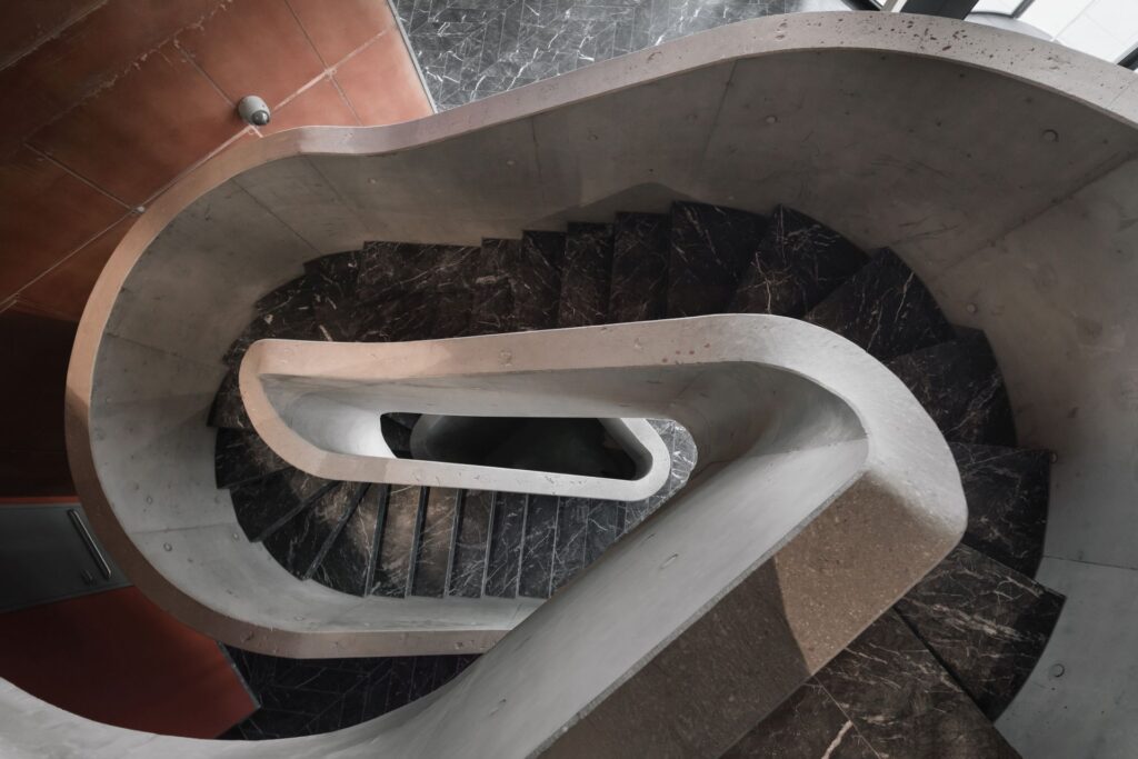 V interiéru byly použity ušlechtilé materiály jako italský mramor Grigio Carnico, který spojuje vstupní halu a výtahová lobby ve všech patrech. Mramorová podlaha se zde doplňuje se zajímavou prostorovou navigací, která je kombinací ručních maleb a grafického orientačního systému. Portály výtahů jsou zpracované v jemném detailu kamenného ostění, v přízemí se opakuje roštový rastrový podhled přenesený z venkovního podhledu. Výtahové haly jsou nasvíceny křehkými skleněnými objekty nástěnných svítidel.
