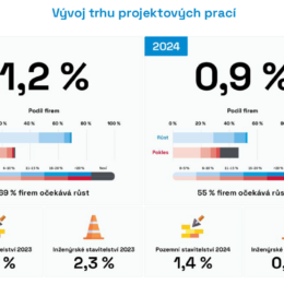 Trh projektových prací letos bude stagnovat. Podle odhadu projektových firem poroste pouze nepatrně o +0,5 %. Kapacity projektantů jsou vytíženy na 93 %, ale z dlouhodobého hlediska jde o menší vytížení než v době extrémního tlaku na kapacity před třemi lety. Pouze mírné oživení lze očekávat pro příští rok, kde […]