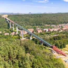 Poslední červencové dny provedli stavbaři Metrostavu a sesterské firmy Bemo Tunnelling poslední devátý výsuv mostu Gottleubatalbrücke v německé Pirně. Ocelová konstrukce dlouhá 916 m a vážící 7223 t byla vysunuta o 64 m. Nejvíce spektakulární část projektu byla po několika letech dokončena. Stavbaři tak dosáhli velkého milníku, jelikož konstrukce nyní spojuje […]