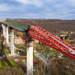 Poslední březnový týden patřil sedmému výsuvu mostu Gottleubatalbrücke v německé Pirně. Stavbaři Metrostavu a sesterské firmy Bemo Tunnelling mají za sebou poslední dlouhý výsuv mostu, při kterém byla 777 m dlouhá a 6.800 t vážící ocelová konstrukce vysunuta o 112 m za 9 hodin hrubého času. Celkově bylo od počátku stavby […]