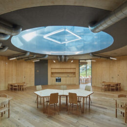 Zadáním města bylo navrhnout novostavbu školky se sportovním zaměřením. Její tělocvična jednou bude sloužit i veřejnosti, zatím byla postavena mateřská škola. Tvoří ji rozehraná kombinace pravoúhlé stavby s bílou fasádou a barevných pagod. Je zřejmé, že pro její autory byly nejdůležitější děti – jejich hry, pohyb, vidění, měřítko, vnímání světla […]