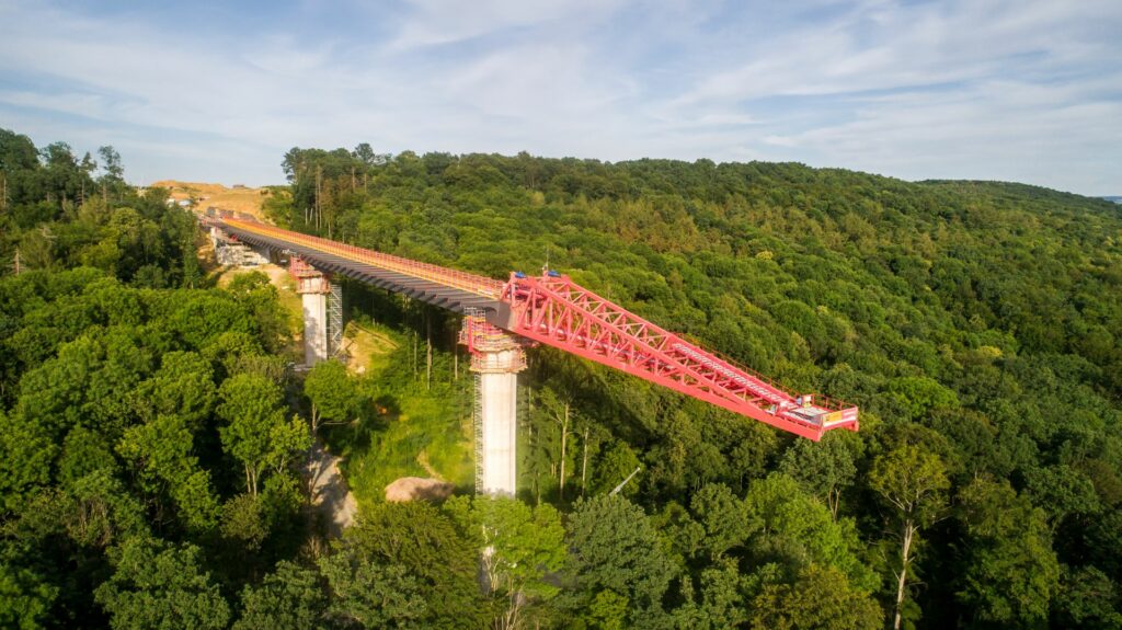 Když se rychlostí 24 metrů za hodinu pohybuje hlemýžď, ani si ho nevšimnete. Když tutéž rychlost vyvine desítky metrů nad zemí konstrukce z několika tisíců tun betonu a oceli, je to výjimečná podívaná. Stavbaři Metrostavu a sesterské firmy Bemo Tunneling minulý týden vysunuli třetí trakt mostu přes Gottleubské údolí v saské Pirně, bráně do Českosaského Švýcarska. Přestože větší část harmonogramu mají ještě před sebou, udělali významný krok k úspěšnému dokončení stavby. Práce totiž musely být kvůli nedostatkům v projektu na několik měsíců zastaveny.