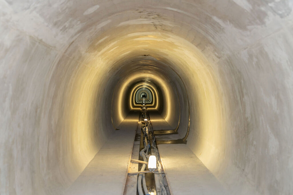 Primární ostění se skládá z důlní příhradové ocelové výztuže (rámy typu Bretex), ocelových sítí a svorníků, stříkaného betonu a zajišťujících prvků. Má minimální tloušťku 250 mm, kde vnitřní a vnější krytí výztuže činí 40 mm. Po dokončení ražby a primárního zajištění stability tunelu naváže provedení trvalé výztuže z železobetonu zajišťující profil po celou dobu životnosti díla a finální vystrojení. Po dokončení bude stavba sloužit k vedení silových kabelů 22 kV a 110 kV.