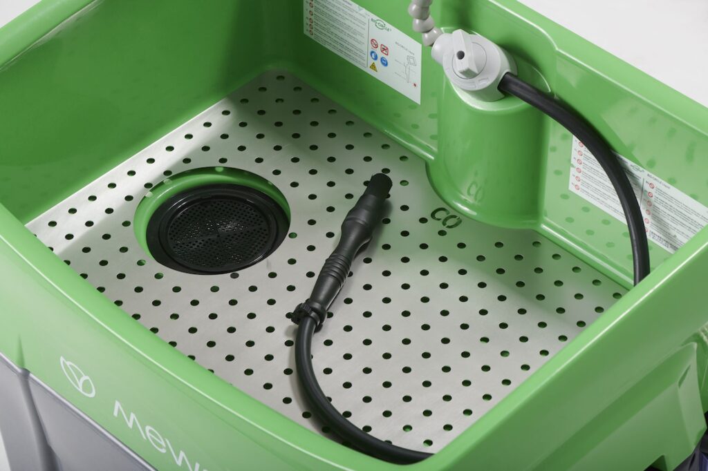 Při průmyslovém čištění dílů je klíčová efektivita a spolehlivost. Nelze však opomenout zdraví zaměstnanců a ochranu životního prostředí. Systém čištění dílů bez látek obsahujících VOC od společnosti Mewa představuje ekologickou alternativu, která splňuje směrnice EU, a to při stejném čisticím výkonu. Mycí stoly a vysokotlaké čističe dílů od společnosti Mewa jsou navíc nabízeny s opravárenským a údržbovým servisem.