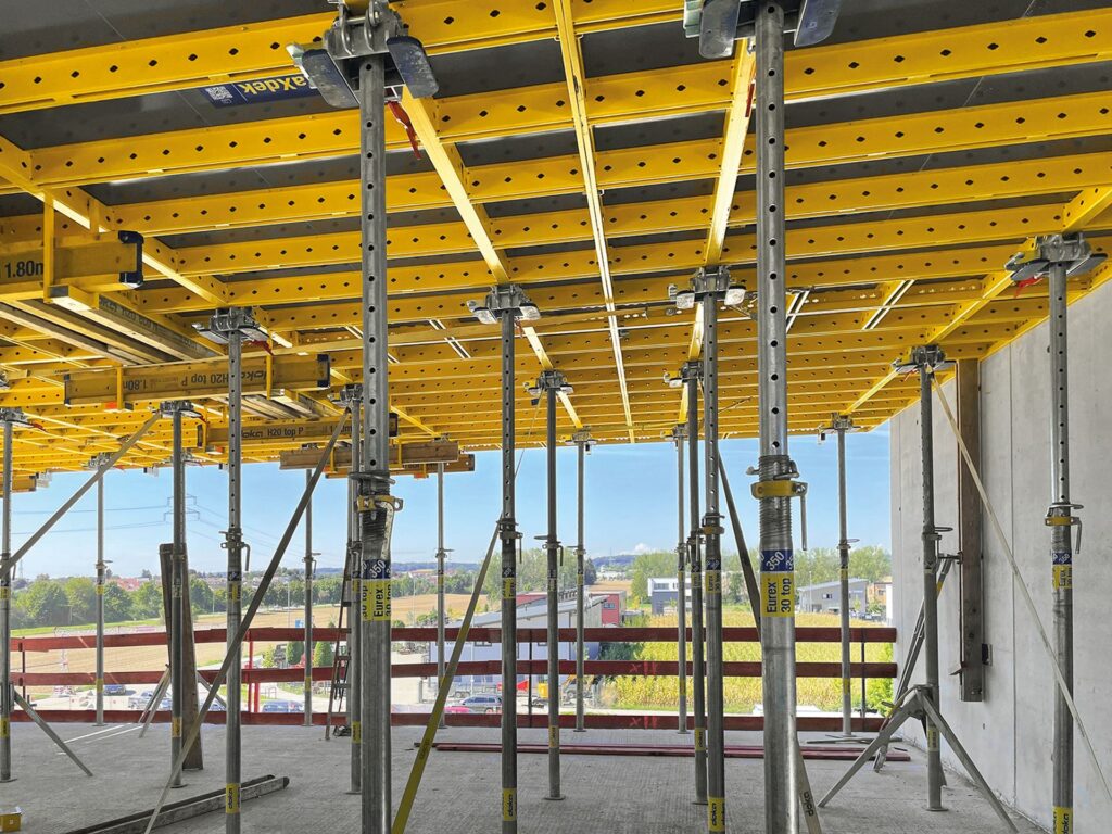 Tři projekty v Německu také těží ze systému DokaXdek. Zsolt Mikuska, stavbyvedoucí výstavby kancelářské budovy společnosti Hafner Hoch und Tiefbau GmbH v Augsburgu, vysvětluje, že firma hledala obzvlášť efektivní řešení pro výstavbu nového čtyřpodlažního komerčního objektu s podzemním parkovištěm v Neusäß. Návrh vyžadoval moderní, čistý vzhled pohledového betonu, což bylo umožněno právě díky vlastnostem systému DokaXdek. Mikuska říká: „Montáž a přesouvání bednění je s novými stropními stoly velmi rychlá a snadná. A díky nízké stohovací výšce se navíc snižují náklady na přepravu.“
