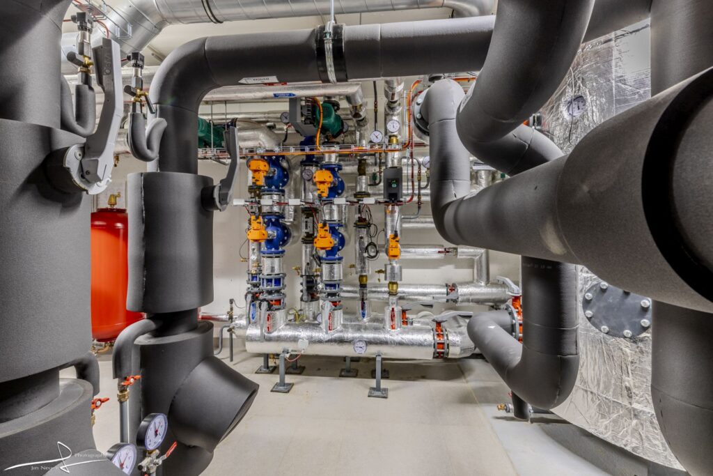 V kampusu bylo nainstalováno celkem 33 energeticky vysoce účinných oběhových čerpadel Wilo řady Stratos MAXO a GIGA. Tato zařízení zajišťují nejen oběh vody pro vytápění a chlazení prostřednictvím stropních rohoží, ale také inteligentně optimalizují svůj provoz podle aktuálních potřeb budovy. Výsledkem je výrazné snížení spotřeby energie a emisí CO2, což přispívá k ochraně životního prostředí i k úsporám provozních nákladů.