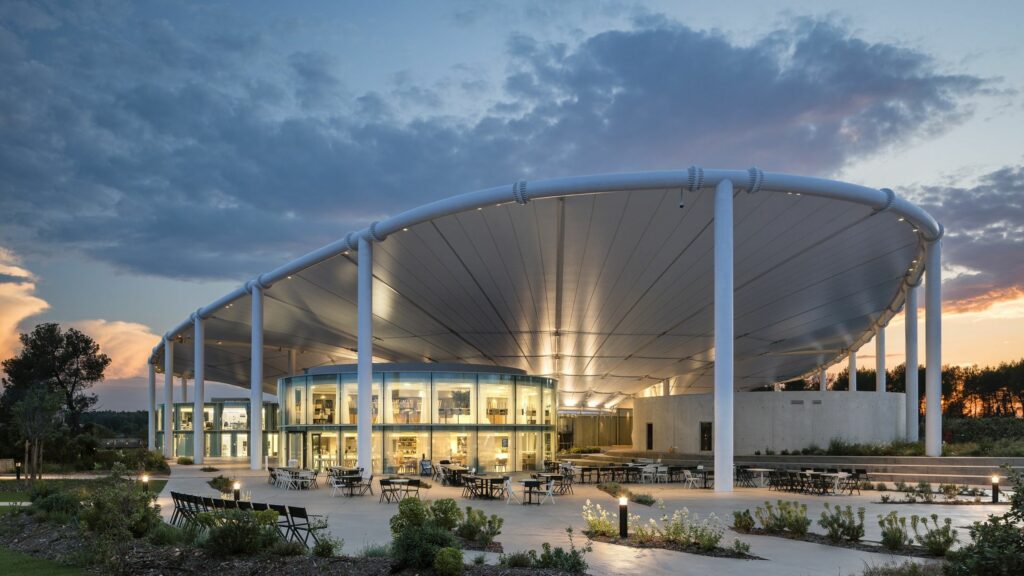The camp se rozkládá na ploše 33 500 metrů čtverečních, a kromě výzkumných prostor, kanceláří a experimentálních laboratoří ho tvoří také 150 ubytovacích jednotek, restaurace, bar a amfiteátr. Celý komplex stojí na okraji města Aix-en-Provence v malebné krajině plné borovicových lesů. Umístění „thecampu“ i architektonické řešení jeho rozlehlé plochy vychází z pomyslného trojúhelníku tvořeného třemi hlavními identifikačními znaky lokality: lesem na severu, horou Sainte Victoire na východě a skalnatým vrcholem na západě.