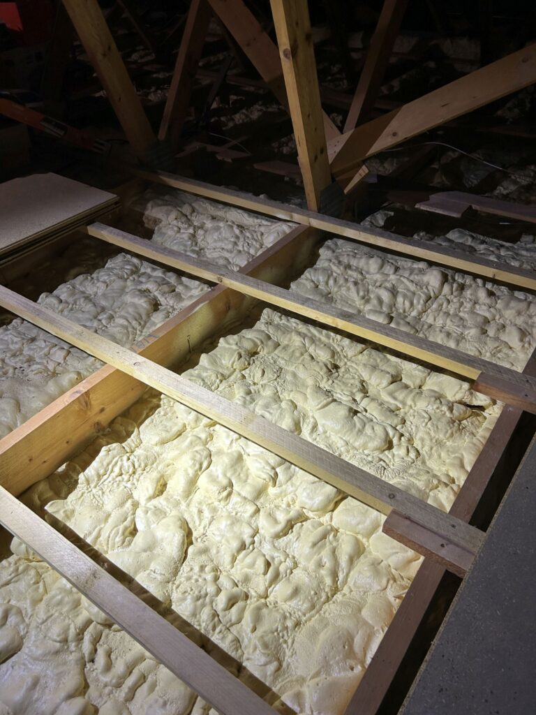 Pěna byla nanesena v tloušťce 26 centimetrů přímo mezi krokvemi. Ani po patnácti letech se však neobjevily žádné trhliny, křehnutí či ztráta přilnavosti. „Pěna byla v celém profilu neporušená, přilnavost k podkladu stále výborná. Vypadalo to, jako by byla aplikována teprve nedávno,“ řekl Lukáš Kmenta ze společnosti HBS.
